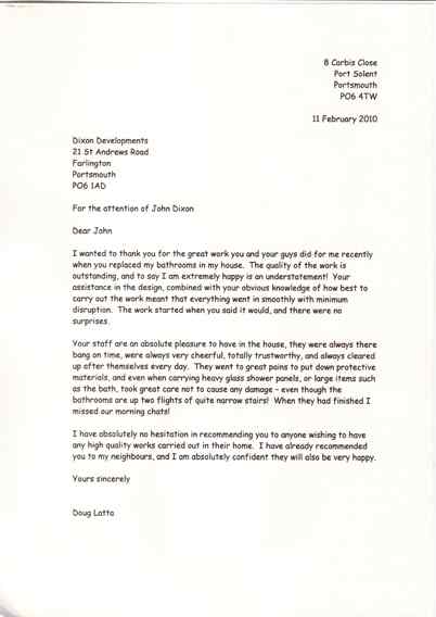 We can supply customer references for building work and in most cases can arrange for a site inspection of previous similar work that has been carried out. This is of course, subject to client permission.